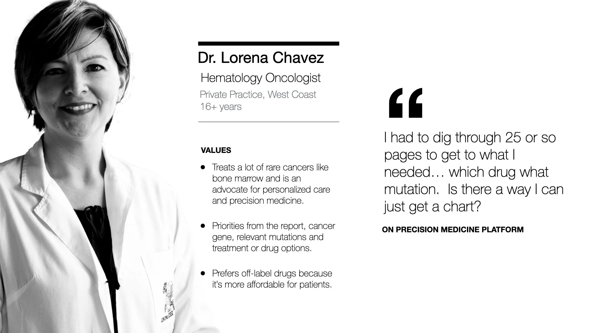 Role-specific research: oncologists prefer less data for their workflow, while molecular biologists need more data to make decisions and treatment recommendations.