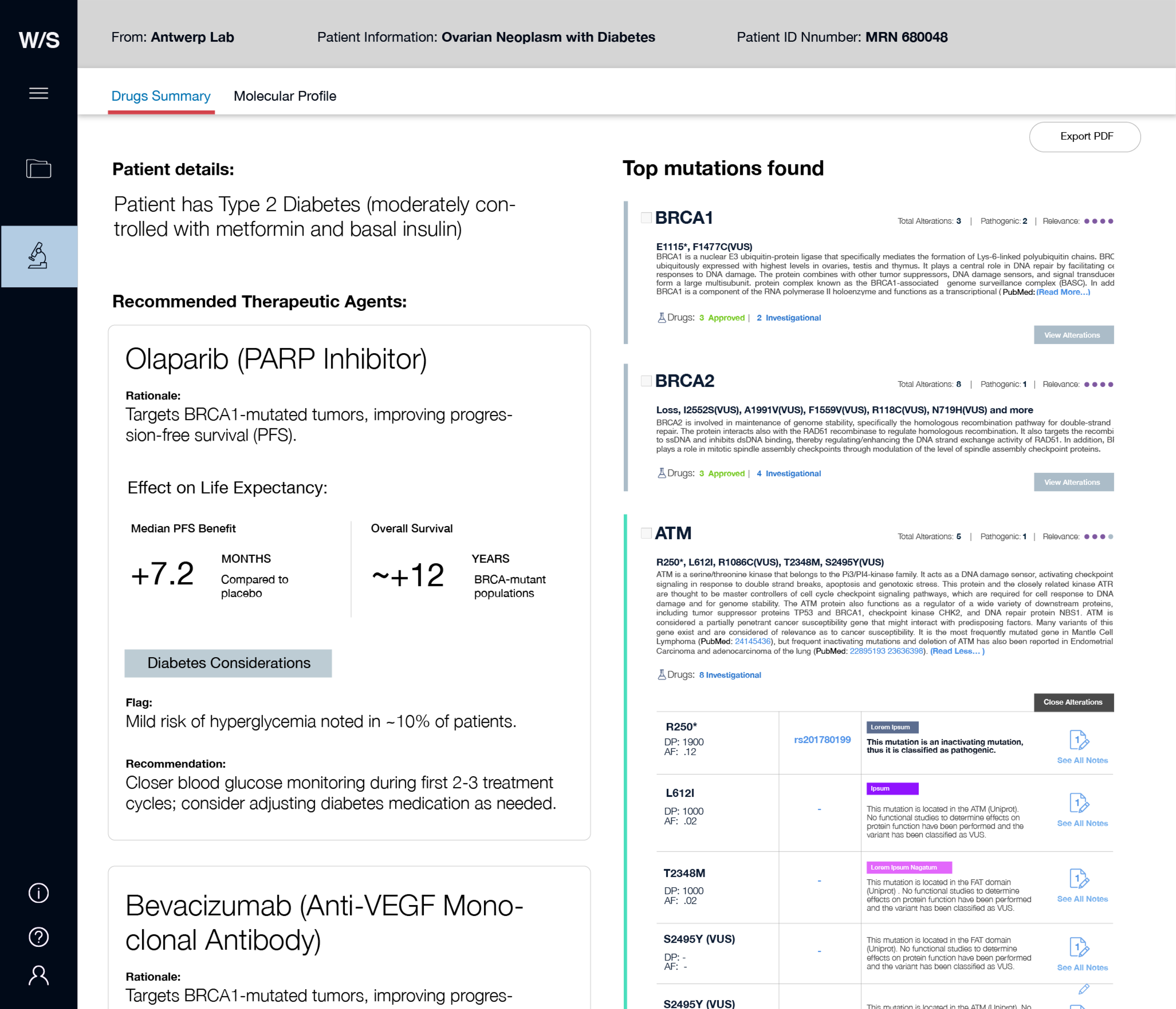 An AI-powered Precision Medicine platform designed to empower both Oncologists and Molecular Biologists to accurately understand which treatment and prevention strategies are well suited for a patient’s particular disease.